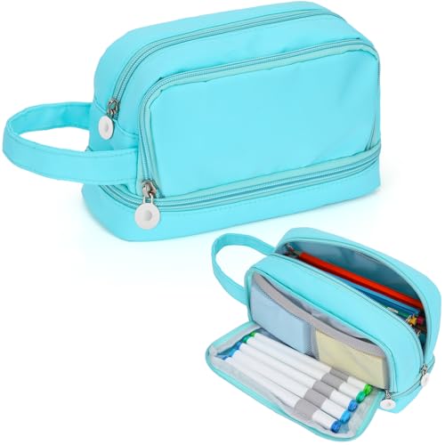 Alyvisun Pennfodral med Stor Kapacitet med 3 Fack för Pojkar Flickor, Multifunktions Brevpapper Arrangör Pennfodral med Handtag, Portabelt Pennskrin för Skola och Kontor (Blå)