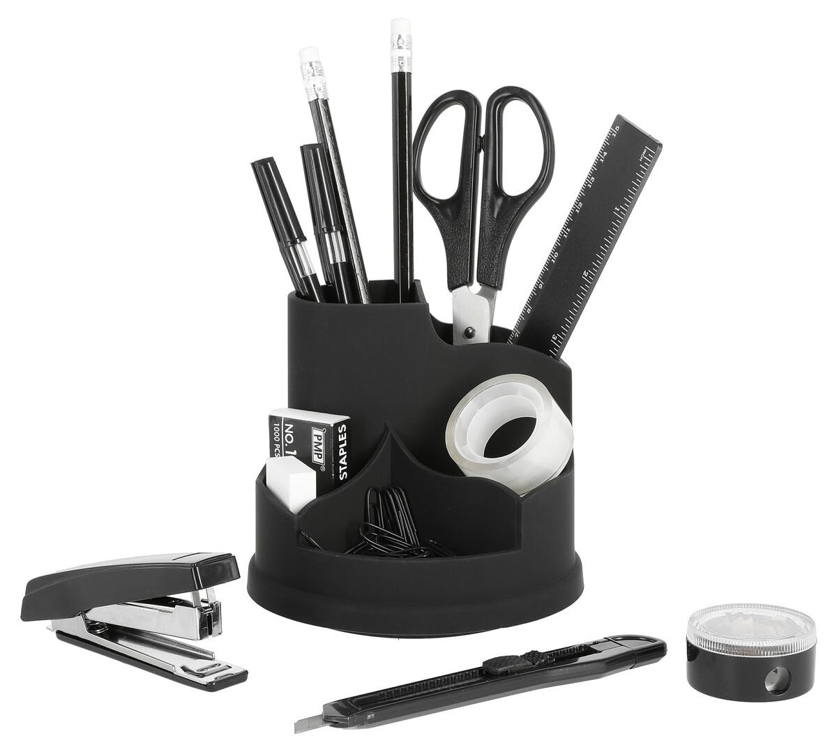 Clas Ohlson Pennställ med pennor, sax, sudd, häftapparat m.m.