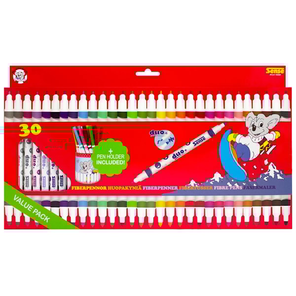 Tuschpennor Dubbelspets 30-pack + Pennställ Sense