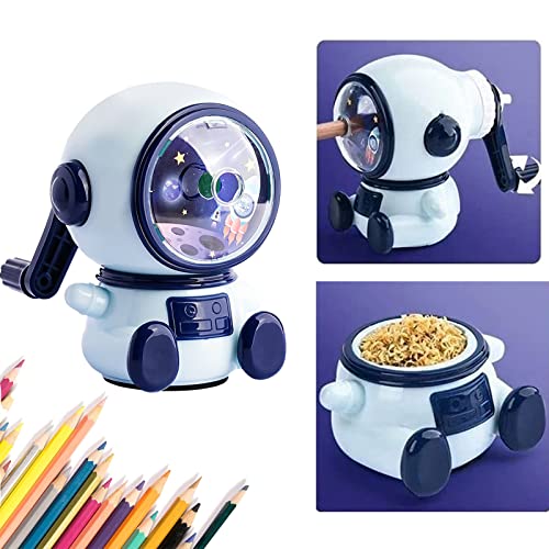 Sykerout Pennvässare, manuell pennvässare, pennvässare med vev, pennvässare med behållare för barn, för kontor, klassrum och hem, astronaut, pennvässare (justerbar i tre växlar