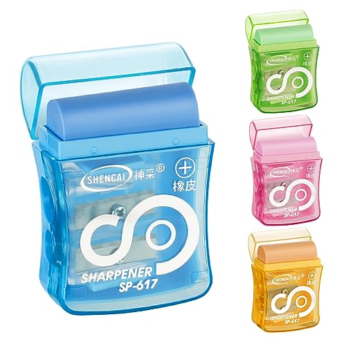 YOFASEN 4 st Pennvässare - Manuella Pennvässare med Omslag Handhållna Pennvässare med Dubbla Hål för Barn Studenter Skolhem Kontorsmaterial