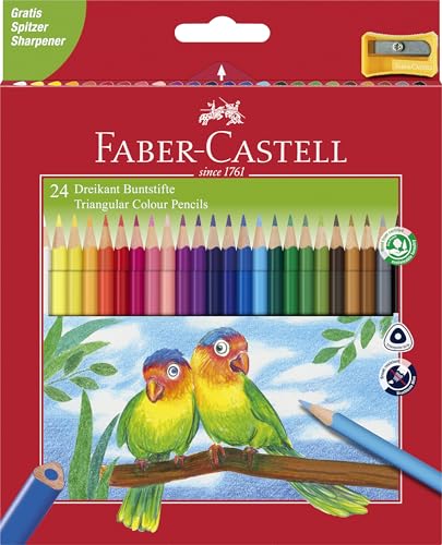 FABER-CASTELL 120542 Triangulära färgpennor, set med 24 pennvässare, pennvässare för barn och vuxna