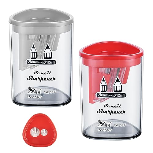 OFFCUP Manuell pennvässare med behållare, dubbelhål, hållbar för barn vuxna studenter skolklass hemmakontor (grå, röd)