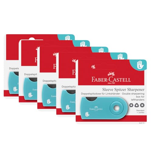 FABER-CASTELL 205244 – Pennvässare vänsterhänt barn, 5 sliphylsor turkos, dubbel pennvässare för pennor och färgpennor