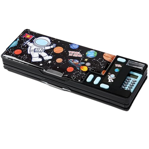 LilyBeauty Pop Up multifunktionellt fodral för flickor och pojkar, söt tecknad penna, pennvässare, schema, skolmaterial för barn PC50, svart, Medium, space man