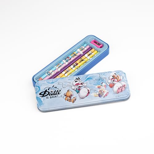 Diddl - Metallpenna 6 färgpennor illustrerade färger + pennvässare - vintage brevpapper set från 90-talet - söt presentidé för barn och Nostalgic