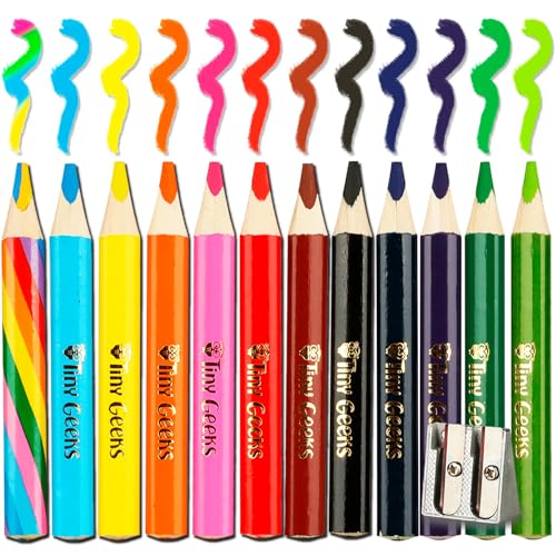 TinyGeeks Jumbo färgade pennor - ny -12 färgglada pennor för barn och extra regnbåge penna pennvässare perfekt för unga skolbarn + rekommenderas av lärare