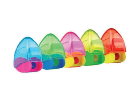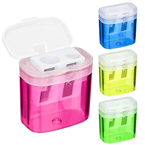 Catelves 4-Färgers Pennvässare med Behållare - Dubbla Hål för Barn, Skola och Kontor - Manuell Liten med Behållare