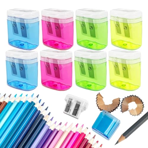 12 stycken pennvässare med behållare, pennvässare barn, dubbla hål pennvässare, för olika typer av blyertspennor skola kontor barn studenter resor, handhållen pennvässare för tjocklek 4 färger