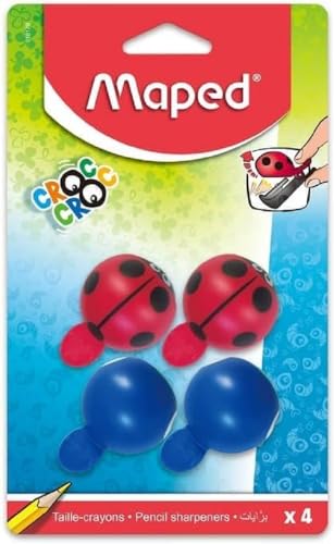 Maped - Set med 4 Croc Easy Ladybird and Whale-pennvässare - 1 hål för standardpennor - lätt att öppna - för barn från 4 år