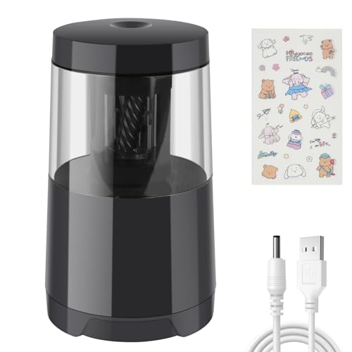 YAOBLUESEA Elektrisk Pennvässare USB Svart, Uppladdningsbar Med Stor Behållare, Automatiskt Stopp för 6-8 mm Blyertspennor - Barn, Skola, Kontor, Hushåll