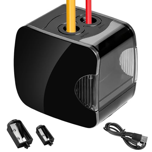 YAOBLUESEA Elektrisk Pennvässare USB Svart, Uppladdningsbar Med Stor Behållare, Automatiskt Stopp för 6-8 mm Blyertspennor - Barn, Skola, Kontor, Hushåll