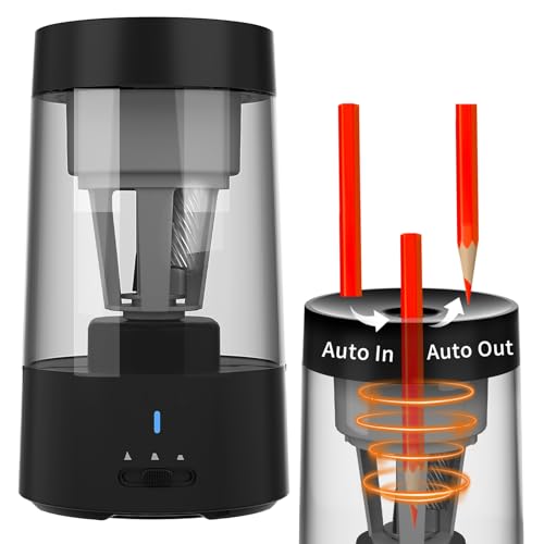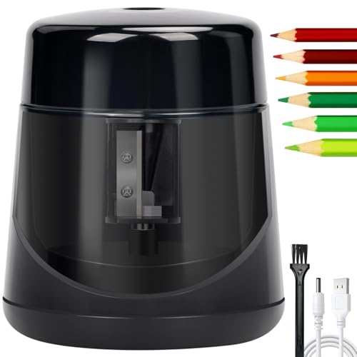 Link Dream elektrisk pennvässare starkare spiralblad automatisk pennvässare automatisk stopp för 6–8 mm nr 2/färgpennor batteri, USB-driven, i klassrummet, kontoret, hemmet, svart, PS-05