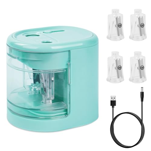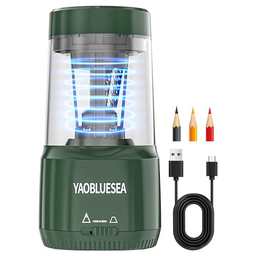 YAOBLUESEA Pennvässare elektrisk USB grön, uppladdningsbar elektrisk pennvässare med stor behållare automatisk stopp för 6–8 mm blyertspennor för skola kontor hushåll
