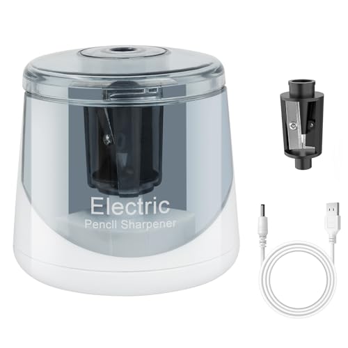 AUAUY Elektrisk pennvässare, bärbar elektrisk pennvässare för barn, automatiskt stopp, batteri/USB-driven universell pennvässare för pennor nr 2/färgpennor (6–12 mm)