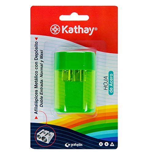 Kathay 86614499. Pennvässare i metall med tank, dubbel ingång: Normal och Maxi, stålblad, slumpmässig färg: grön, blå, orange, brun