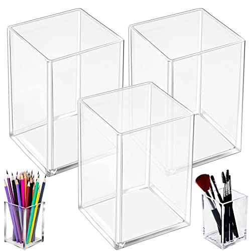 Akrylpennhållare skrivbord, 3 st. pennhållare, transparent penselhållare, penselarrangör för skrivmaterial och kosmetikaborstförvaring (10,5 x 6,7 x 6,7 cm)