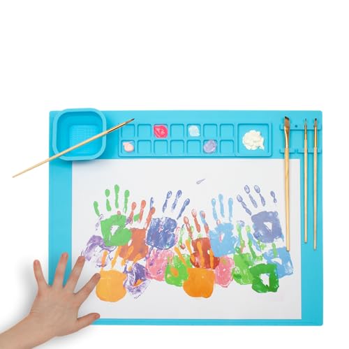WEDO Målarmatta av silikon med blandningsplattor, vikbar kopp och penselhållare, färg ljusblå, storlek ca 50,5 x 40,3 x 0,8 cm