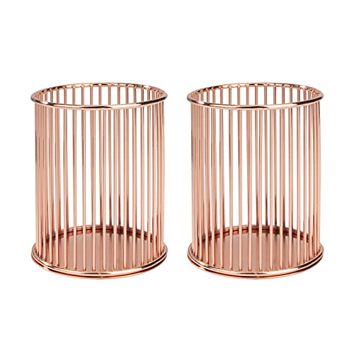 MengH-SHOP Pennhållare genombrutet rund järnkonst pennhållare multifunktionell skrivbordsorganisatör pennkoger organisering makeup penselhållare 2 stycken (roséguld)