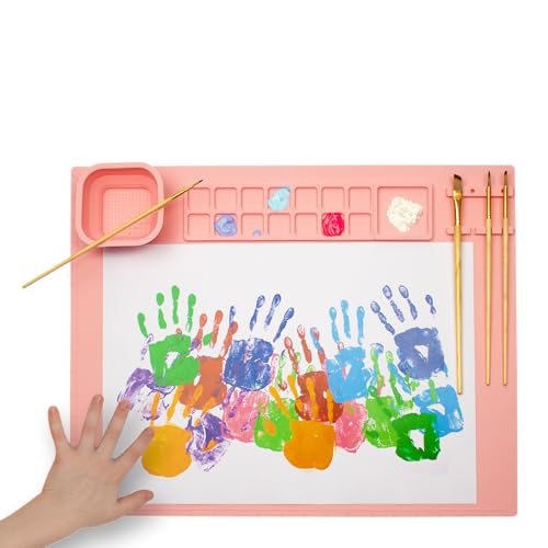 WEDO Målarmatta av silikon med blandningsplattor, vikbar kopp och penselhållare färg rosa, storlek ca 50,5 x 40,3 x 0,8 cm