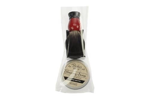 Fantasia Rakset med rakborste röd/svart syntetiskt hår, sandelträ rakttvål i aluminiumburk, svart penselhållare, 3 delar