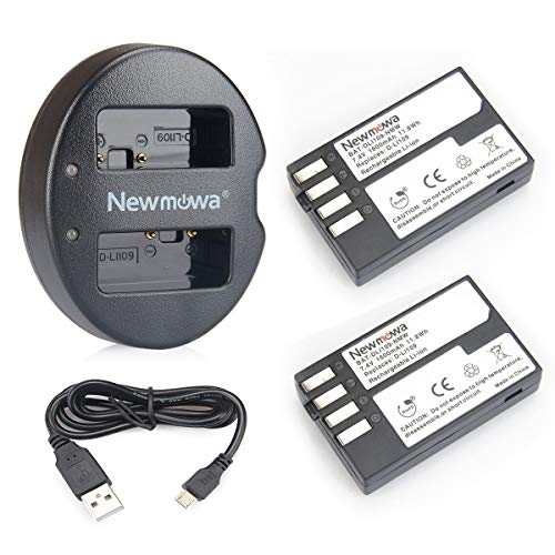 Newmowa D-Li109 ersättningsbatteri (2-pack) och dubbel USB-laddare för Pentax D-Li109 Pentax K-R KP K-30 K-50 K-500 K-S1 K-S2