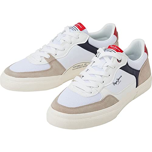Pepe Jeans Kenton Master Mesh Sneaker för män, Vitt, 45 EU