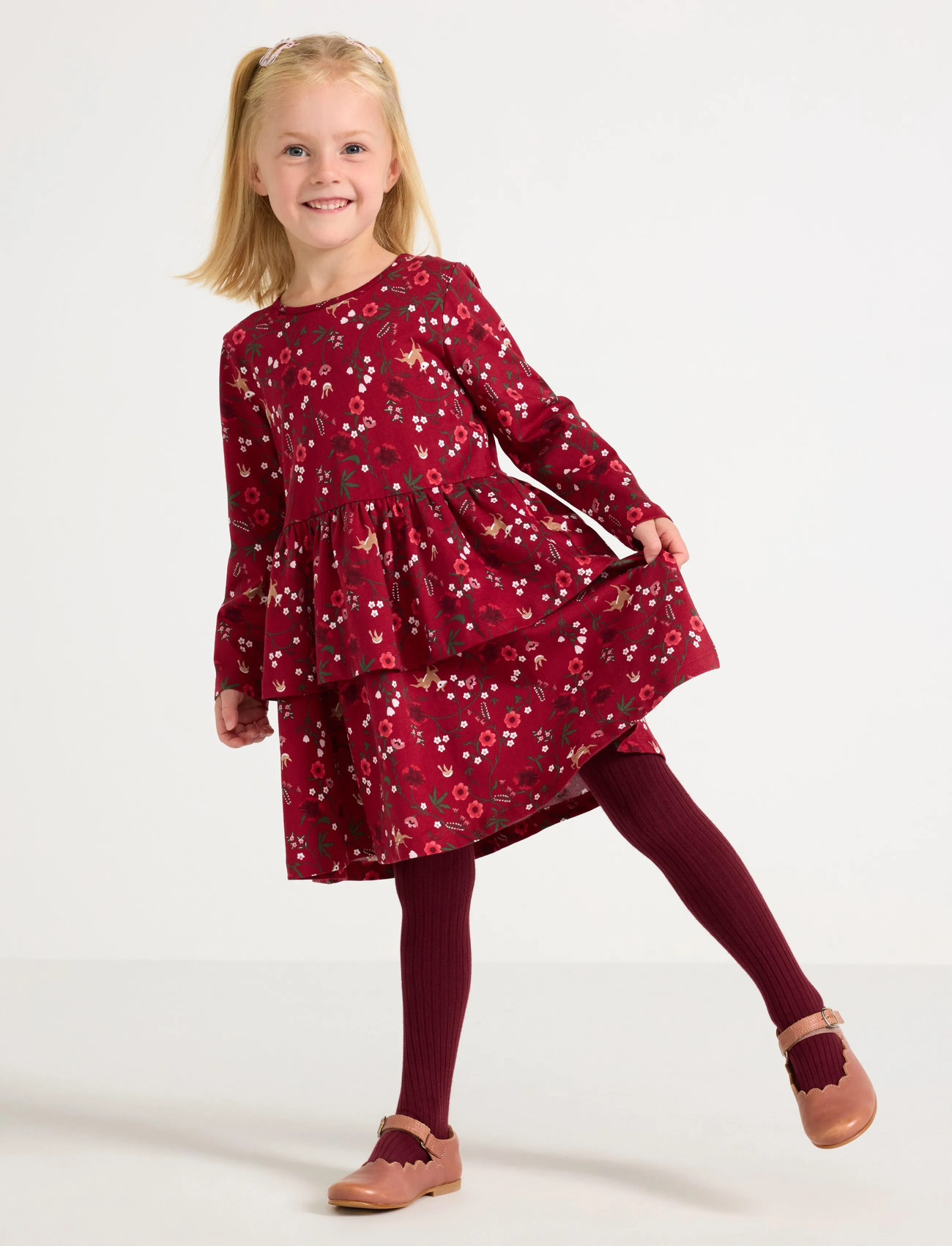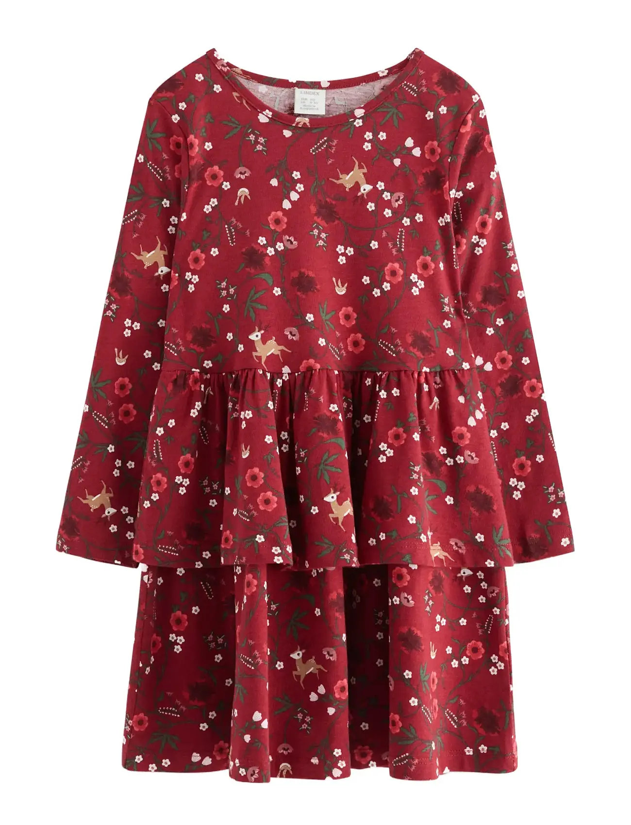 Lindex Dress Ls Peplum Aop - Red - 92