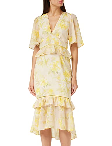Hope & Ivy Women's The Harper Lou Midi te-klänning med peplum midja och veckad volangkjol speciellt tillfälle, gUL, 50 SE