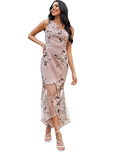 Chi Chi London Dam One Shoulder Peplum broderad bodycon klänning cocktail, Rouge, 38