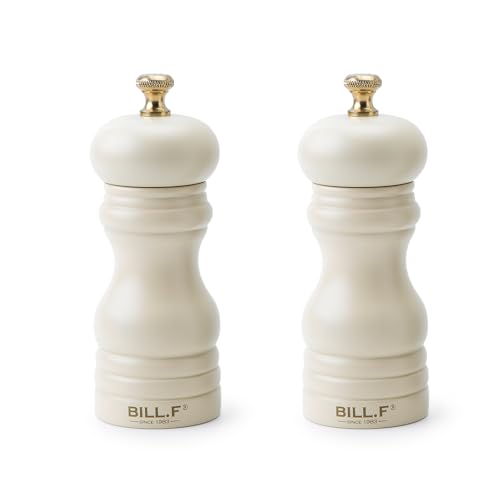 Bill.F Salt- och pepparkvarn, set med 2 manuella salt- och pepparkvarn, påfyllningsbar 12 cm med justerbar keramisk slipningsrotor (set med 2 krämer)