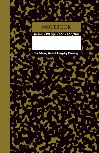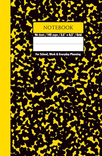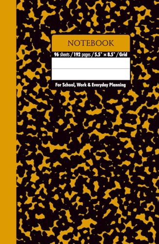 Black & Yellow Marble Hardcover Notebook – Grid, 192 Pages, 5.5" x 8.5", Premium Matte Finish: Perfect for math, science, engineering, design projects, journaling, and daily productivity