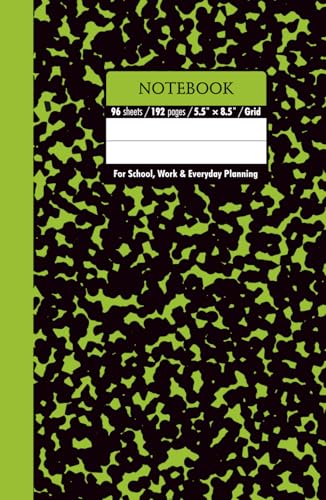 Black & Green Marble Hardcover Notebook – Grid, 192 Pages, 5.5" x 8.5", Premium Matte Finish: Perfect for math, science, engineering, design projects, journaling, and daily productivity