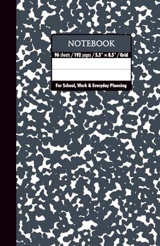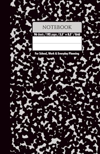 Black & Gray Marble Hardcover Notebook – Grid, 192 Pages, 5.5" x 8.5", Premium Matte Finish: Perfect for math, science, engineering, design projects, journaling, and daily productivity