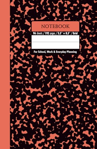 Black & Peach Orange Marble Hardcover Notebook – Grid, 192 Pages, 5.5" x 8.5", Premium Matte Finish: Perfect for math, science, engineering, design projects, journaling, and daily productivity