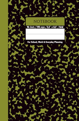 Black & Olive Green Marble Hardcover Notebook – Grid, 192 Pages, 5.5" x 8.5", Premium Matte Finish: Perfect for math, science, engineering, design projects, journaling, and daily productivity
