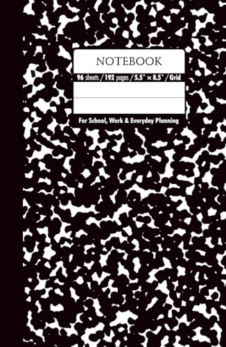 Black & White Marble Hardcover Notebook – Grid, 192 Pages, 5.5" x 8.5", Premium Matte Finish: Perfect for math, science, engineering, design projects, journaling, and daily productivity