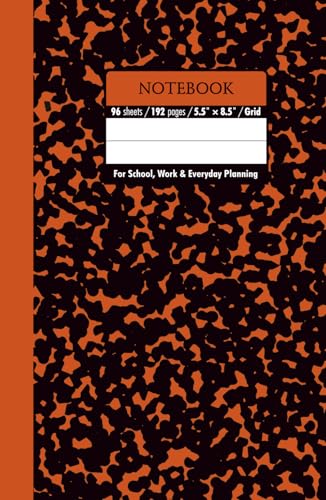 Black & Orange Marble Hardcover Notebook – Grid, 192 Pages, 5.5" x 8.5", Premium Matte Finish: Perfect for math, science, engineering, design projects, journaling, and daily productivity
