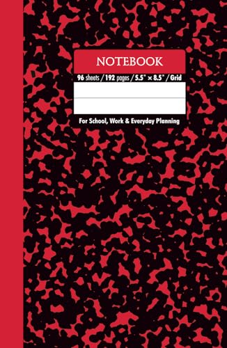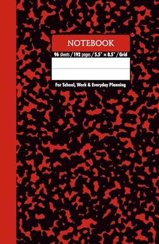 Black & Red Marble Hardcover Notebook – Grid, 192 Pages, 5.5" x 8.5", Premium Matte Finish: Perfect for math, science, engineering, design projects, journaling, and daily productivity