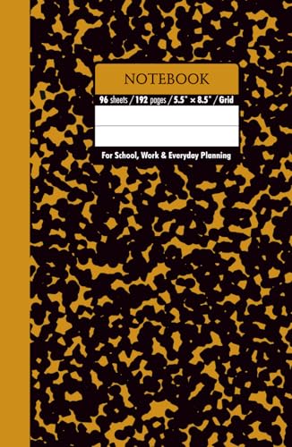 Black & Goldenrod Marble Hardcover Notebook – Grid, 192 Pages, 5.5" x 8.5", Premium Matte Finish: Perfect for math, science, engineering, design projects, journaling, and daily productivity