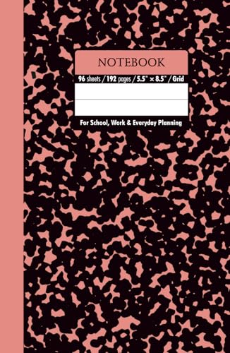 Black & Dusty Coral Marble Hardcover Notebook – Grid, 192 Pages, 5.5" x 8.5", Premium Matte Finish: Perfect for math, science, engineering, design projects, journaling, and daily productivity