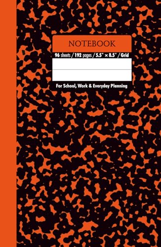 Black & Pumpkin Marble Hardcover Notebook – Grid, 192 Pages, 5.5" x 8.5", Premium Matte Finish: Perfect for math, science, engineering, design projects, journaling, and daily productivity