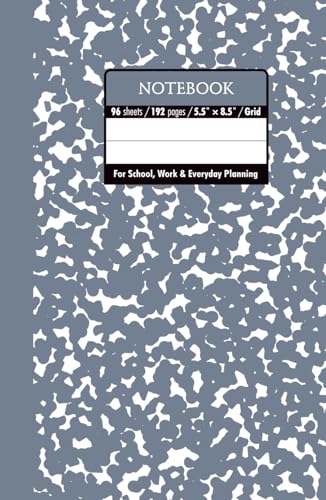 Slate Gray & Black & White Marble Hardcover Notebook – Grid, 192 Pages, 5.5" x 8.5", Premium Matte Finish: Perfect for math, science, engineering, design projects, journaling, and daily productivity