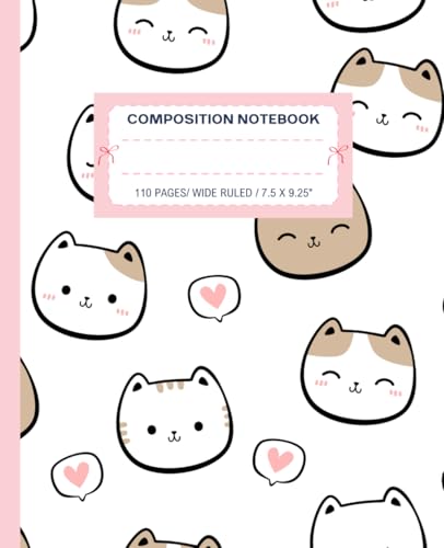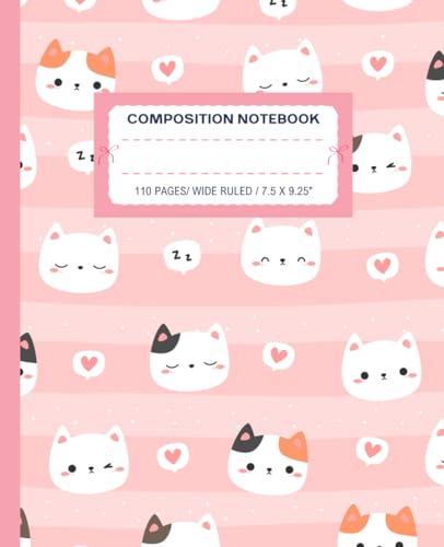Super Cute Kawaii Cat & Heart Composition Notebook Pastel Pink & White: Wide Ruled Preppy Y2K Girly Design Journal; Cool Cats School Supplies For Girls, Kids, Teens; Perfect Gift For Girl, Teen