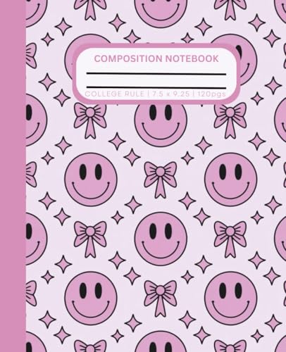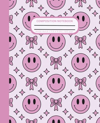 Cute Preppy Aesthetic Composition Notebook with Pastel and Hot Pink Coquette Bows and Smiley Faces: Wide Ruled Journal for Girls, Kids, Teens; Perfect ... for Girl | 120 Pages, Lined Paper, 7.5 X 9.25
