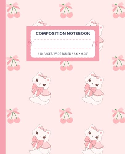 Super Cute Coquette Composition Notebook Cat, Cherry & Bow Pastel Pink: Wide Ruled Preppy Y2K Girly Design Journal; Cool Cats School Supplies For Girls, Kids, Teens; Perfect Gift For Girl, Teen