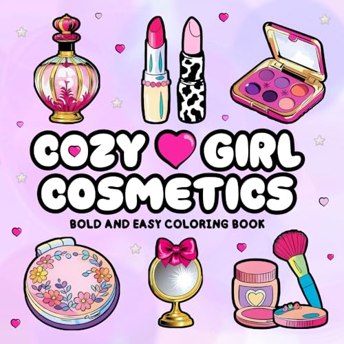 Cozy Girl Cosmetics Bold and Easy Coloring Book: Perfect for Adults and Teens, Fun and Simple Illustrations of Beauty Essentials, Makeup Tools, and Self-Care Moments for Relaxation and Stress Relief