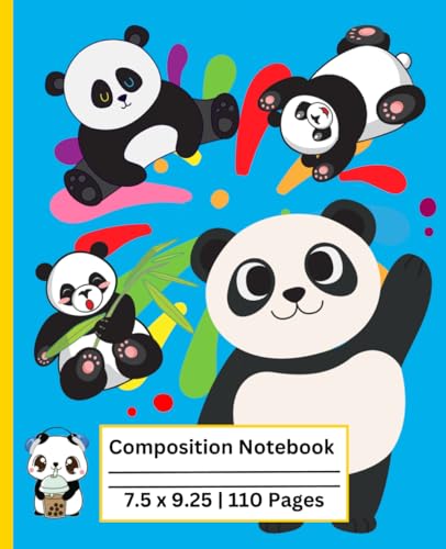 Composition Notebook: blue background Panda Journal, Wide Ruled, 110 Pages: Magical Writing for Kids boy and girl Perfect for School, Writing, and Notes
