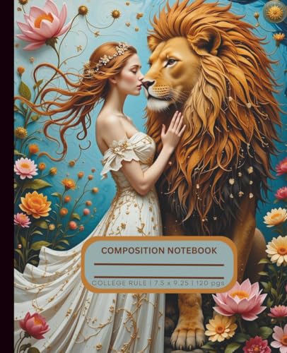 Composition Notebook College Ruled Girly: Cute College Ruled Journal for Girls, Kids, Teens; Perfect Gift for Girl | 120 Pages, Lined Paper, 7.5 X ... Vintage Floral Lion Design with Pink Flowers