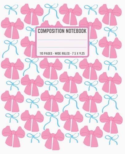 Cute Girly Pastel Pink & Blue Bows Coquette Composition Notebook: Wide Ruled Aesthetic Cool Design; Preppy Lover Stuff; School Notebook for Girls, Kids, Teens, Students; Perfect Gift for Girl